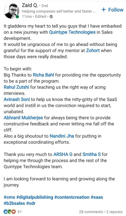 Our course is tailored for freshers and professionals with up to 3 years of experience, particularly those looking to build or strengthen their skills in SaaS sales. The curriculum also includes dedicated strategies for those transitioning from EdTech to B2B sales.